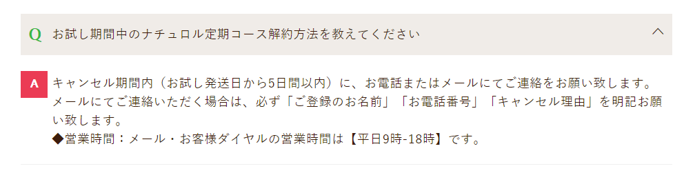 注意: 解約はお試し発送日から5日間以内に電話またはメールで連絡する必要があります。
