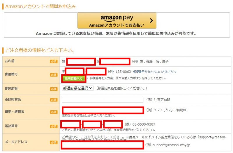 まず、上記の赤枠のご注文者情報を記入してください。