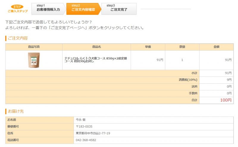 このページでは、注文内容・お届け先を確認してください。