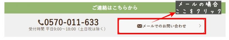 メールで送りたい場合は、上記のボタンを押すと下記のページとびますので、必要事項を記載し送信してください。